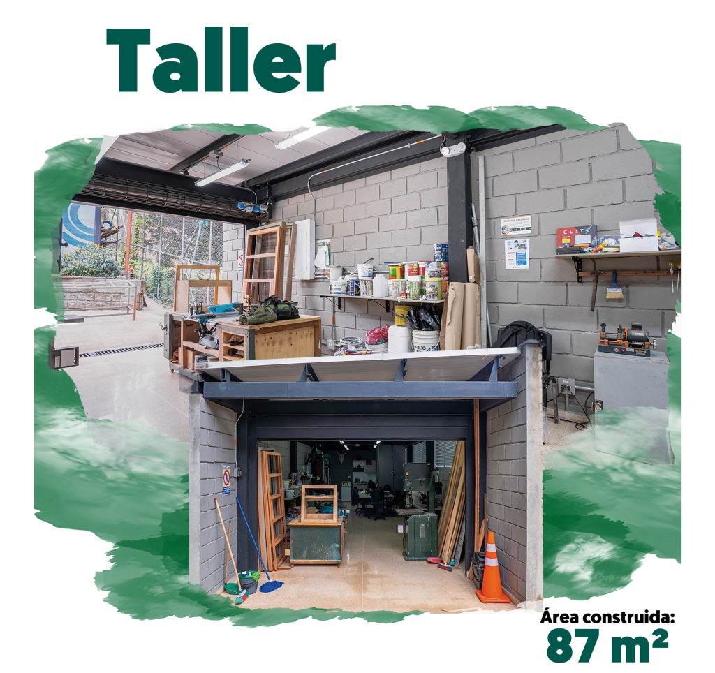 Taller de ‘Toño’: está conformado por dos niveles que integran zonas de almacenamiento y trabajo. El lugar propicia funcionalidad, seguridad y rendimiento en el desarrollo de actividades de servicios generales, carpintería y soldadura.