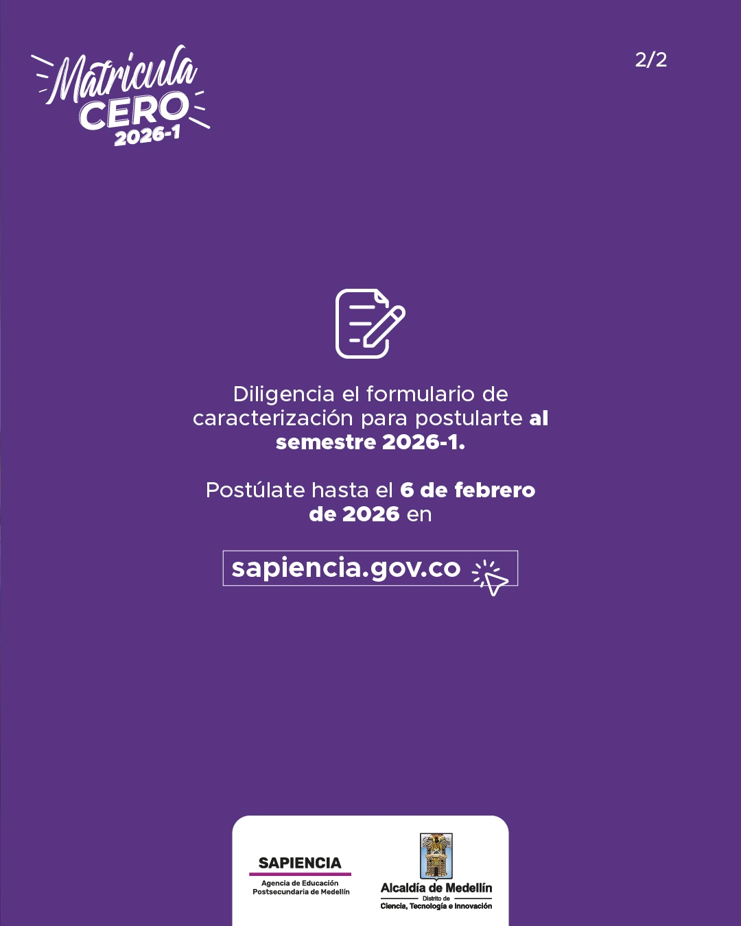 Inscripciones Sapiencia – Matrícula Cero 2026 -1