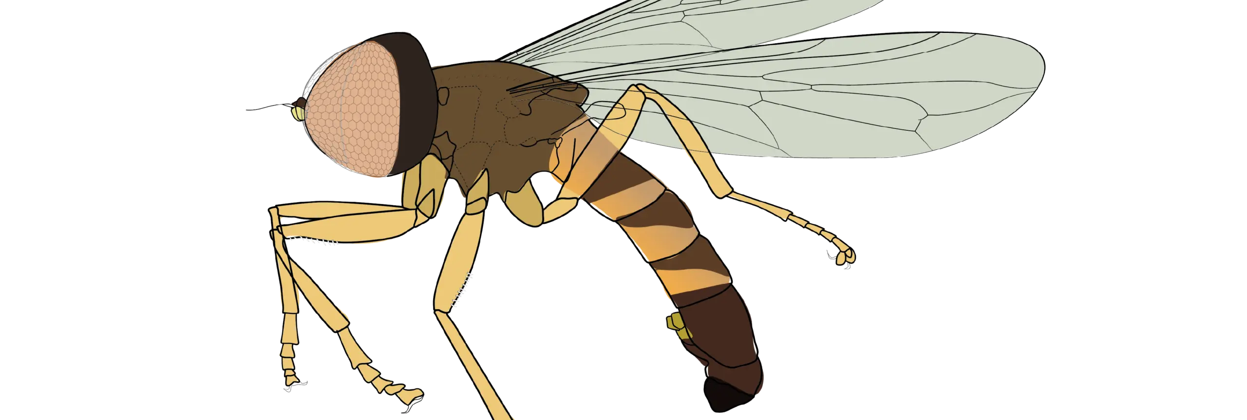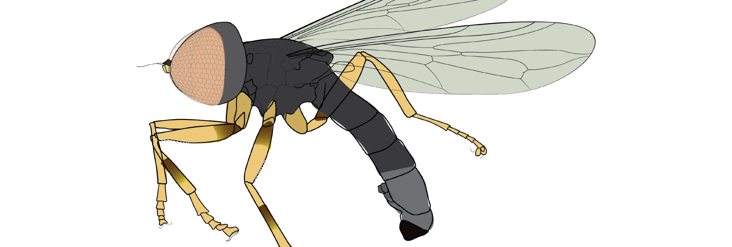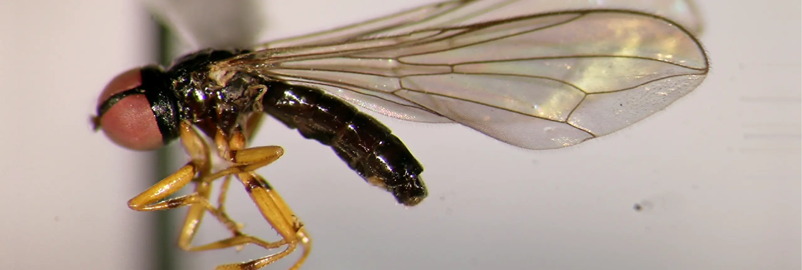 El docente e investigador del TdeA explica que esta familia es particular porque “los ojos representan entre el 80% y el 90% de su cabeza, lo que la hace muy fácilmente reconocible”. Añade que son moscas pequeñas, de alrededor de 5 milímetros, y que, al creerse poco comunes, han sido poco estudiadas: “No sabíamos qué hacían, dónde vivían, qué comían, cómo se aparean y buscan pareja, ni cómo se comportan”.