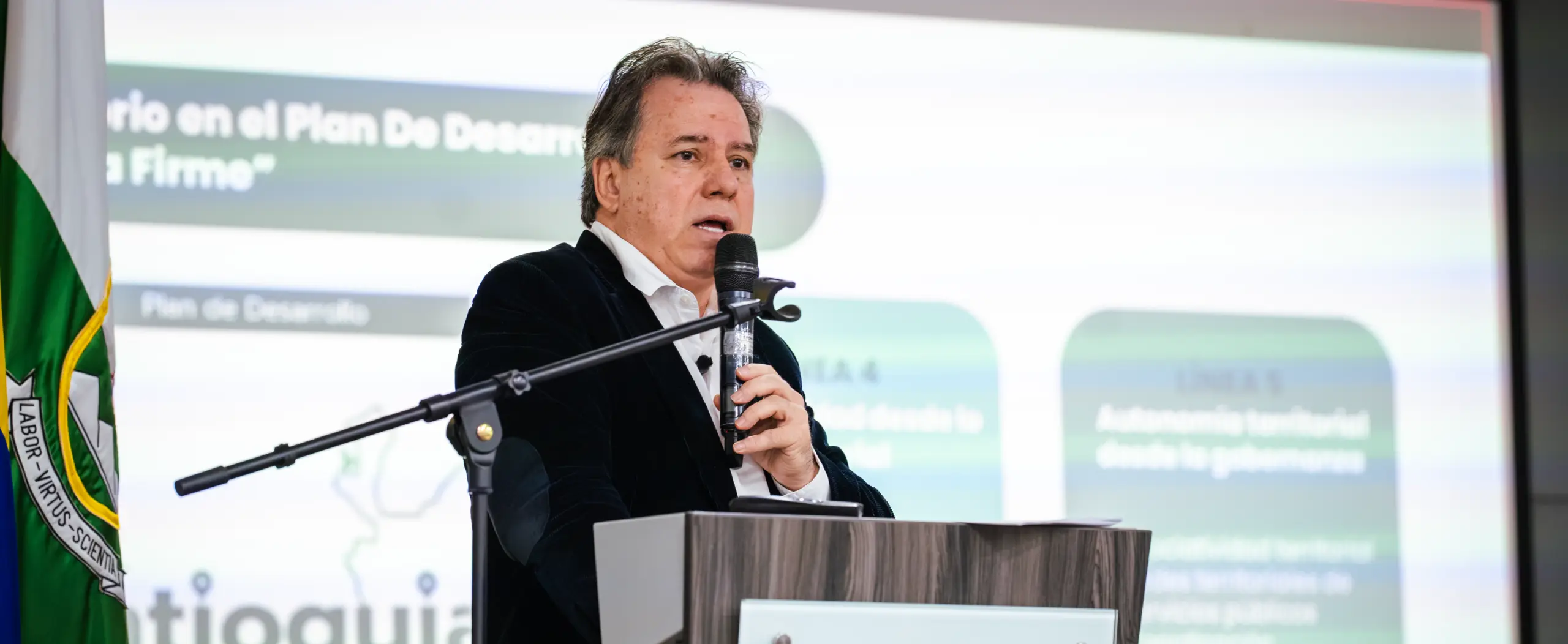 La primera ponencia del simposio estuvo a cargo de Eugenio Prieto Soto, director del Departamento Administrativo de Planeación de Antioquia, con la ponencia “Hidrotorio Antioqueño, un modelo de ordenación del territorio alrededor del agua”.