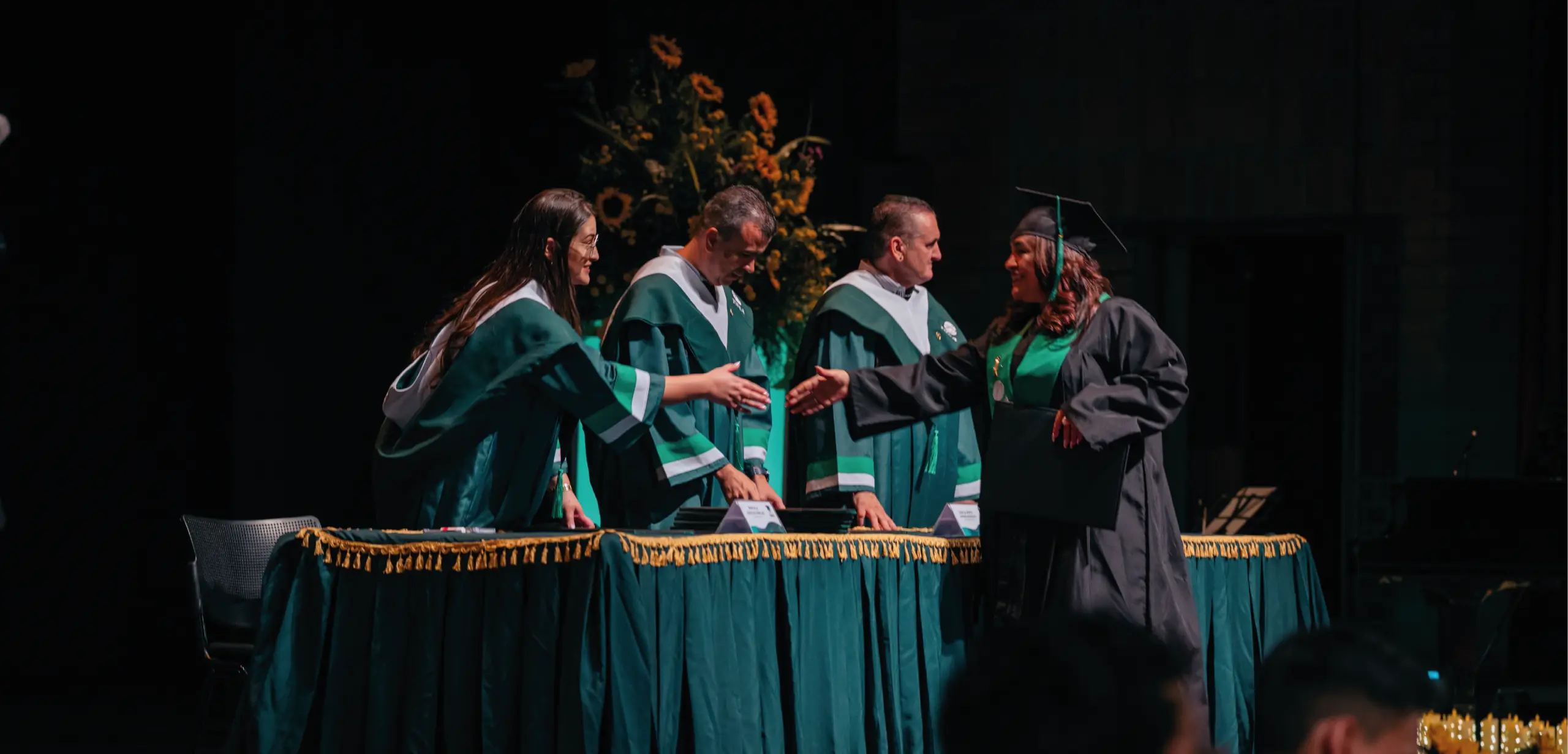 Este grupo de amigos se graduó en la primera ceremonia, de la Facultad de Educación y Ciencias Sociales, de donde egresó la estudiante con el mejor promedio de la institución universitaria, Yésica Ríos Cardona. En la segunda egresaron los alumnos de la Facultad de Ingeniería y la Facultad de Derecho y Ciencias Forenses. En la tercera fue el turno para la Facultad de Ciencias Administrativas y Económicas. Siendo esta la cohorte, de 2026, más numerosa de los últimos años, con 1.112 graduandos.