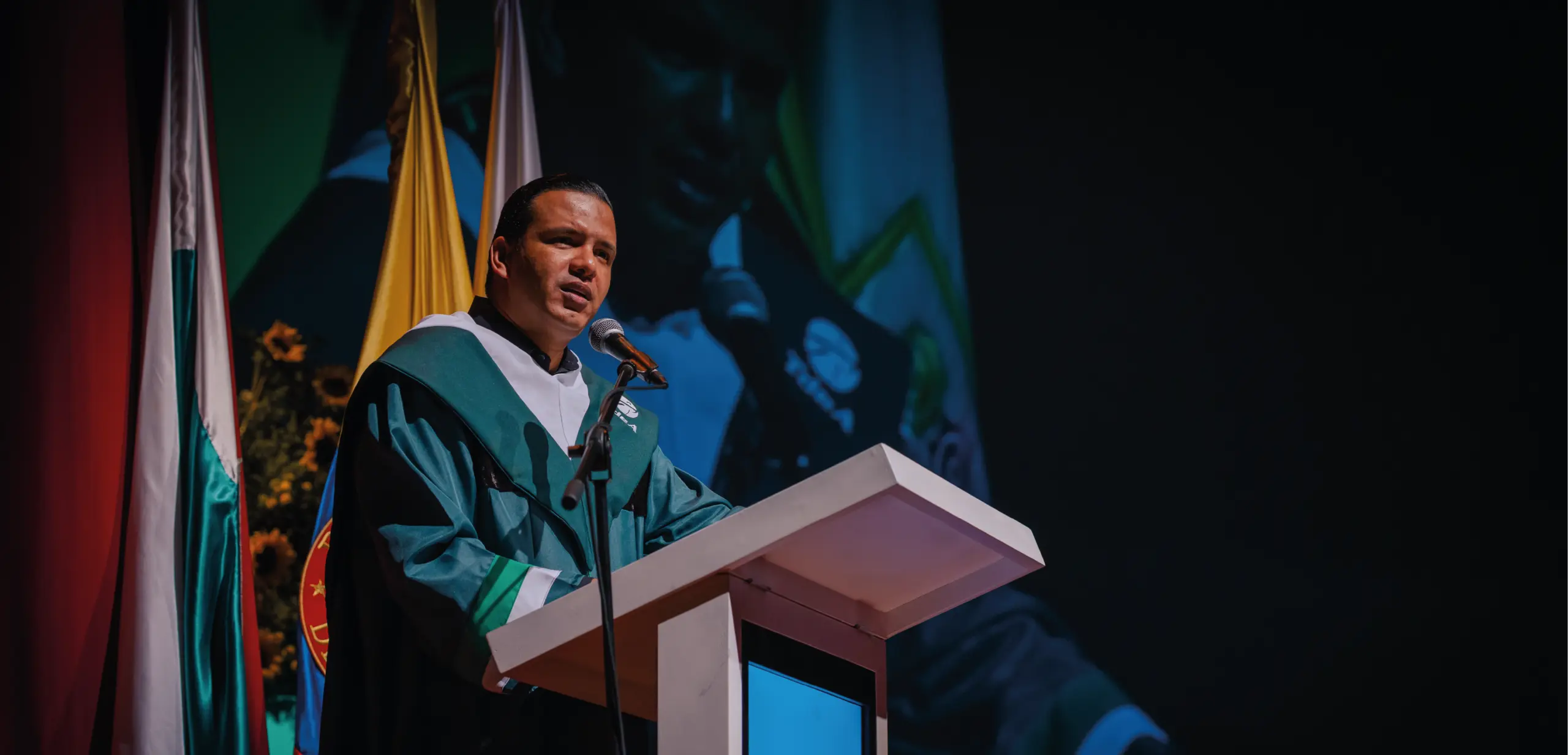 El administrador financiero, Jair Trujillo Rincón, compartió parte de su historia: “Permítanme compartir algo personal. Soy de San Vicente del Caguán, Caquetá, un lugar donde muchos sueños a veces parecen lejanos. Soy el primero en mi familia en culminar la universidad. Llegué solo a esta ciudad, con una billetera vacía y una maleta llena de sueños. Con un solo propósito: estudiar. Compré un pasaje sin regreso. Tuve que quemar mis barcos. Sabía que esta era mi única oportunidad. No conocía a nadie, ni tenía familia. Pero tampoco imaginé que encontraría aquí una familia hecha de compañeros, profesores y amigos. Hoy compruebo que ningún origen define el destino”. Jair describió lo que hay detrás de esta ceremonia, es una celebración de sueños cumplidos y de proyectos de vida posibles.