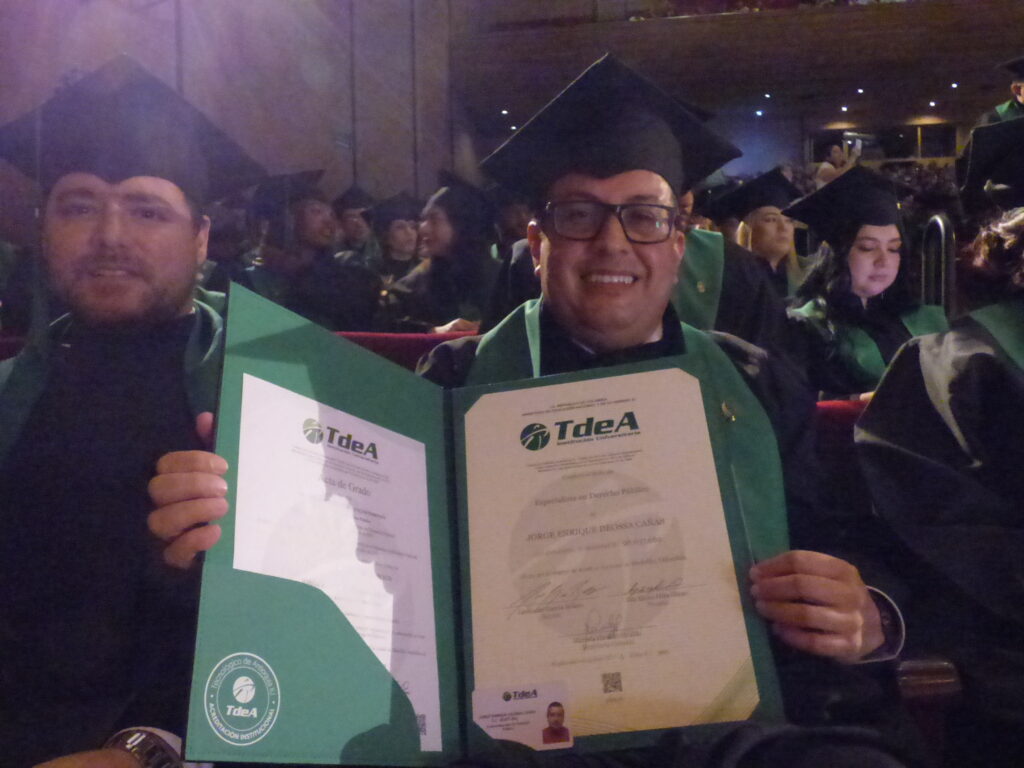 El psicólogo, Julián Andrés Mesa Pineda, fue uno de los encargados en dar el discurso de grados a nombre de sus compañeros. Recordó los sueños y las expectativas con las que llegaron al TdeA y cada experiencia con la que lo transitaron. Dispuso un espacio para un agradecimiento especial: “Este logro también es de nuestros padres, que con cada esfuerzo nos sostuvieron, empacándonos el almuerzo, ayudándonos con los pasajes, recibiéndonos en casa con un abrazo cuando llegábamos cansados. Fue nuestra familia la que estuvo allí aun cuando nosotros mismos dudábamos”. Lo hizo extensivo a los profesores que les enseñaron a amar sus carreras e invitó a sus compañeros a trabajar por sociedades más justas y a generar oportunidades de cambio.