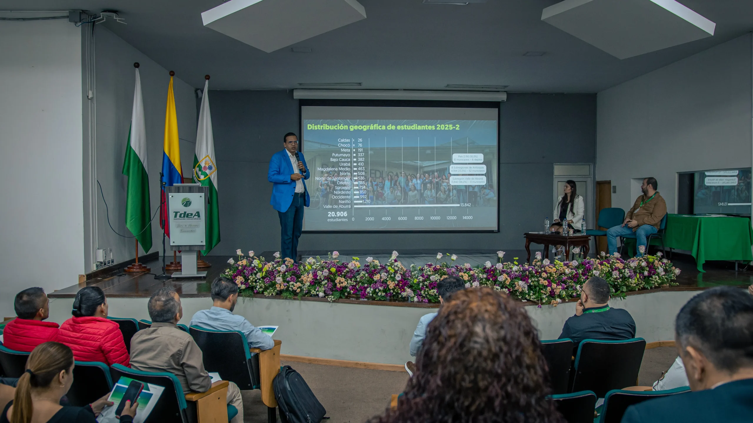 Durante el encuentro, que se cumplió el 8 de octubre, en el auditorio del campus de Robledo, las directivas de la institución, en cabeza de su rector, Leonardo García Botero, socializaron con los asistentes los aspectos más notables que tendrá la estrategia “Territorio TdeA” en 2026, en su segundo año de implementación.